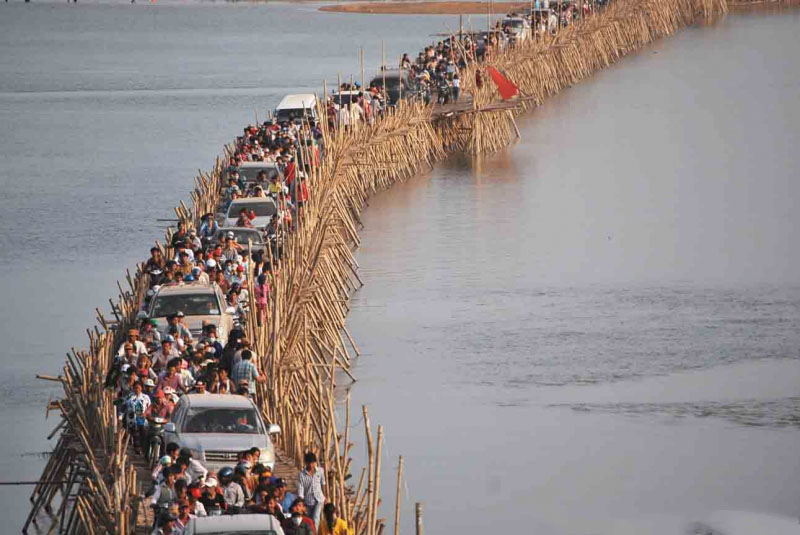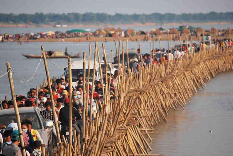 Du lịch Campuchia khi mùa khô đến, nước sông Mekong cạn dần, cây cầu lại bắt đầu được xây dựng. Nhưng sau đó, khi đến mùa mưa, cây cầu độc lại được tháo dỡ, được cất giữ cẩn thận hoặc được sử dụng vào các công trình khác.