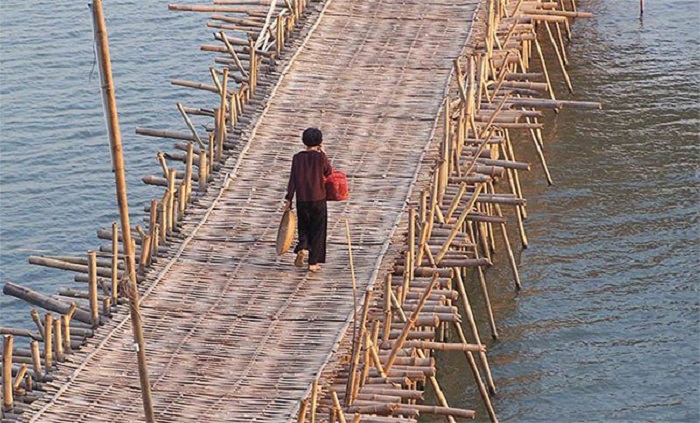 Campuchia nơi không chỉ biết đến với những ngôi đền đài, chùa tháp đồ sộ uy nghi, mà nơi đây còn được biết đến với những cây cầu tre độc đáo mà không nơi nào có được, cây cầu tre tại thành phố Kampong Cham được ghép lại từ 50.000 khúc tre, và mỗi độ thu về cầu tre cây cầu tre lại được dựng mới.