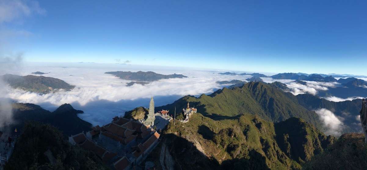 Tới Fansipan bất kể mùa nào, ngồi trên cabin cáp treo rẽ ngàn trùng mây, giữa thênh thang đất trời và dãy núi Hoàng Liên Sơn, du khách đều có một cảm giác an nhiên. Đó là khởi đầu cho hành trình về miền đất Phật. Khi đặt những bước chân đầu tiên trên bậc đá xanh lấm tấm sương hay ánh lên màu vàng của nắng, ngước mắt lên cao, bạn sẽ cảm nhận được cõi thiền uy nghiêm mà bình yên, tấp nập mà thanh tịnh.